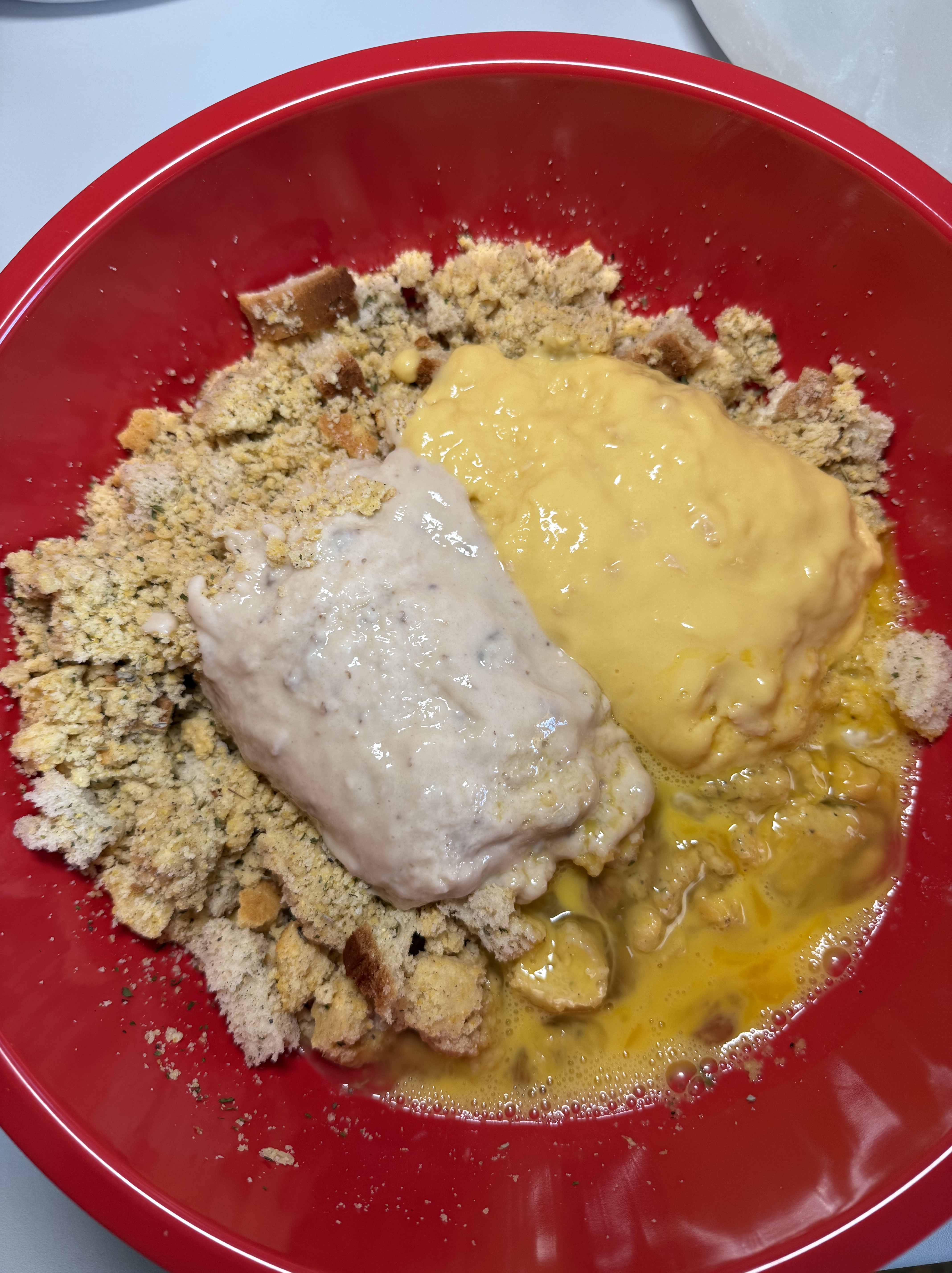 Adding the cream of soups and eggs