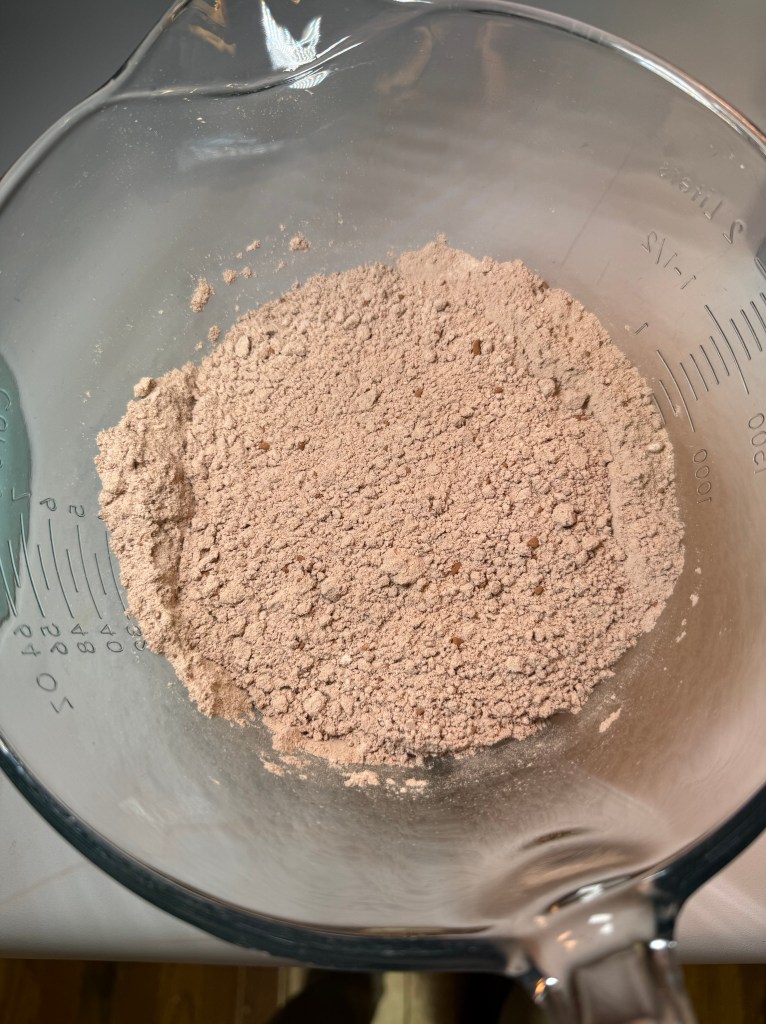 - In a separate medium sized bowl, whisk together flour, cocoa, baking soda, and salt.