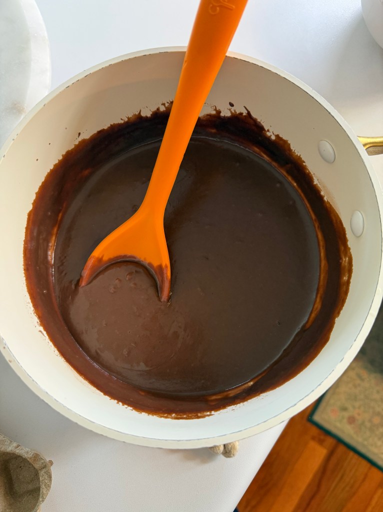 - Remove from heat and add in butter and vanilla.