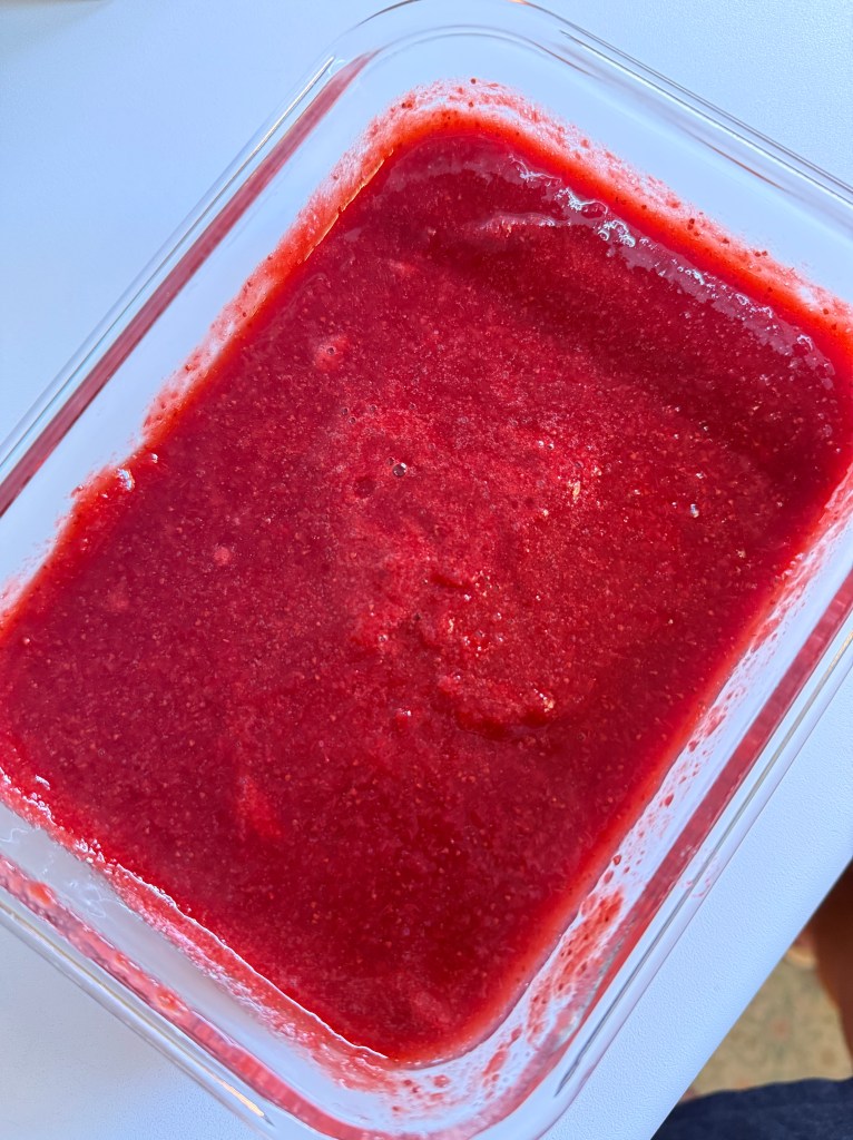 -1/2 cup finely chopped (with juice) or pureed strawberries