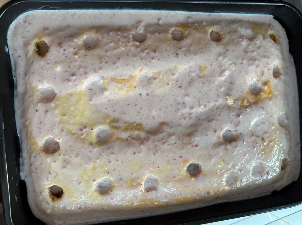 Once I poured the berry puree/sweetened condensed milk over the cake
