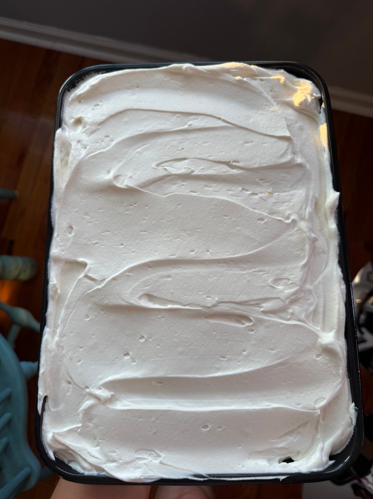 Homemade whipped cream is one of the things that makes this cake so yummy in my opinion. It’s so easy to make and so much better than the kind you buy in a tub at the grocery store! However, if you are in a time crunch, the kind in the tub will be just fine. 🙂